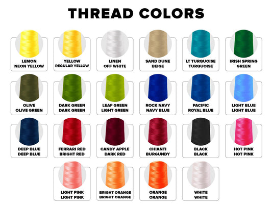 Use our customizer to add text, select fonts and thread colors.