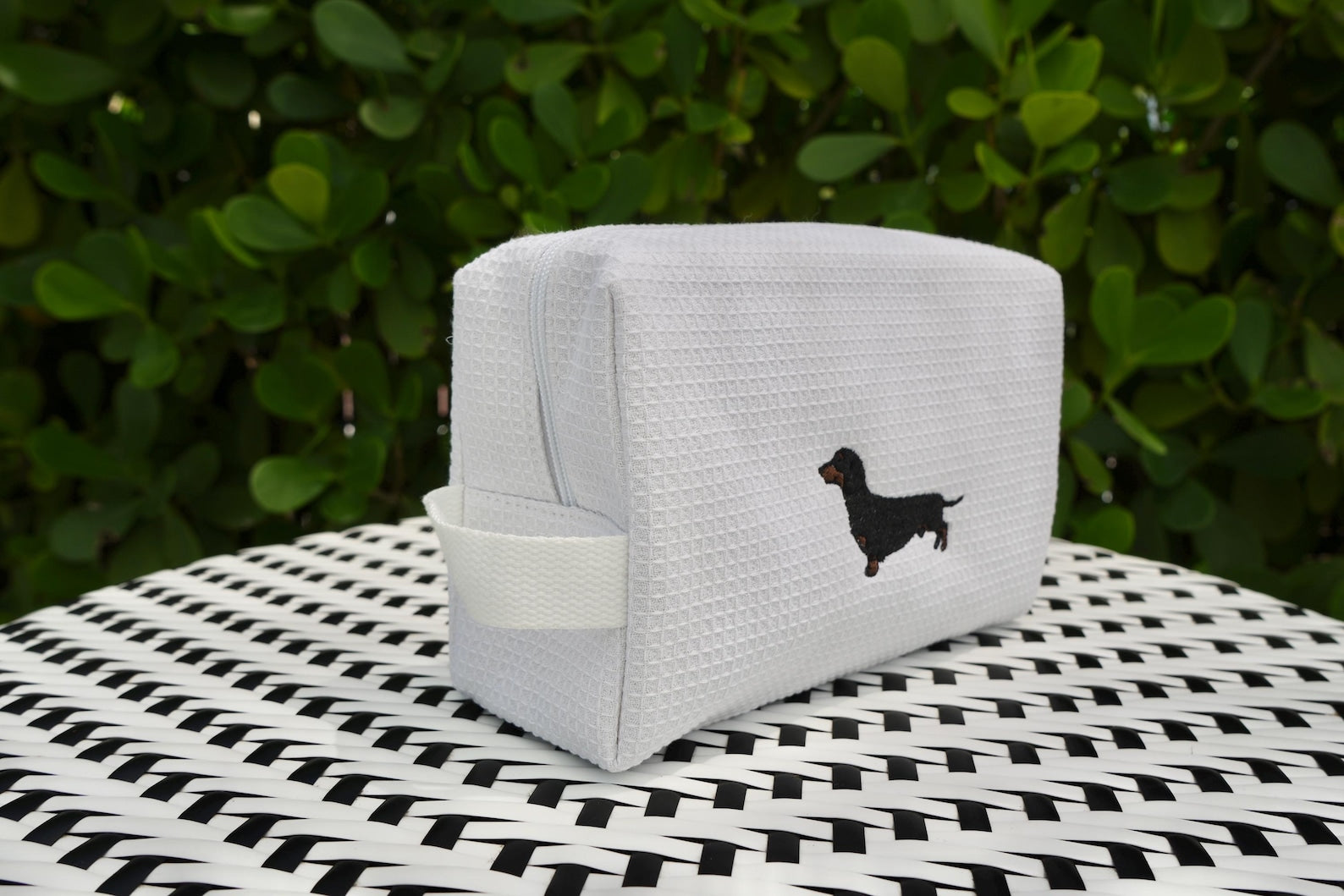 Dachshund Lover Embroidered Waffle Cosmetic Bag Monogram Travel Toiletry Pouch