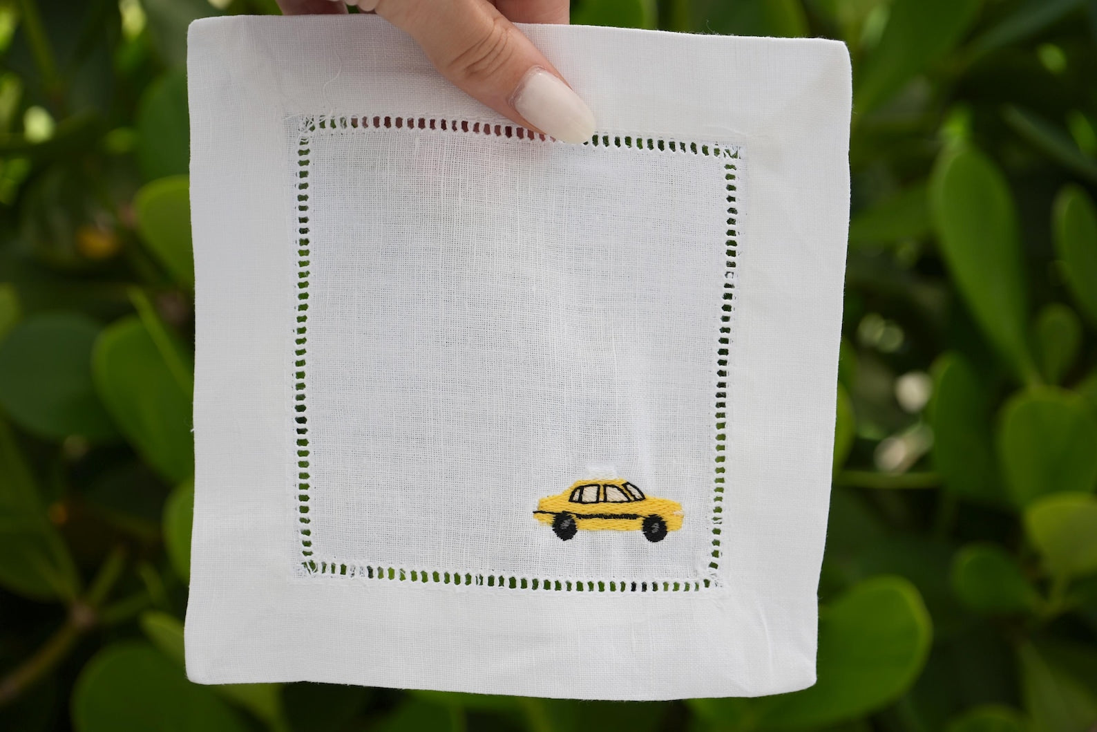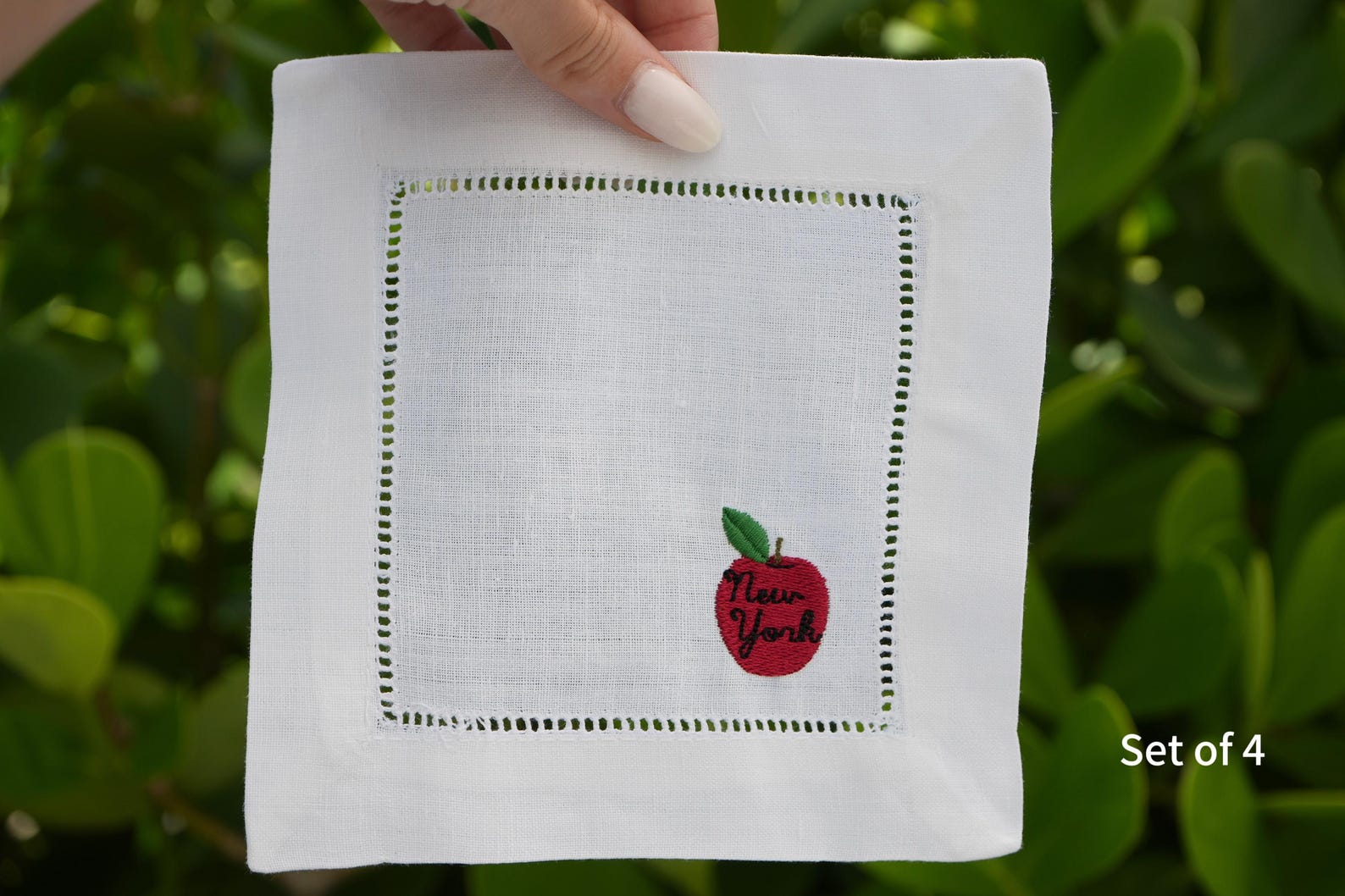 Bring the energy of the Big Apple to your table with these New York–inspired cocktail napkins! Featuring iconic embroidered motifs—the classic yellow taxi, the Statue of Liberty, the Empire State Building, and of course, a bright red apple—this set is a love letter to NYC, stitched in style.