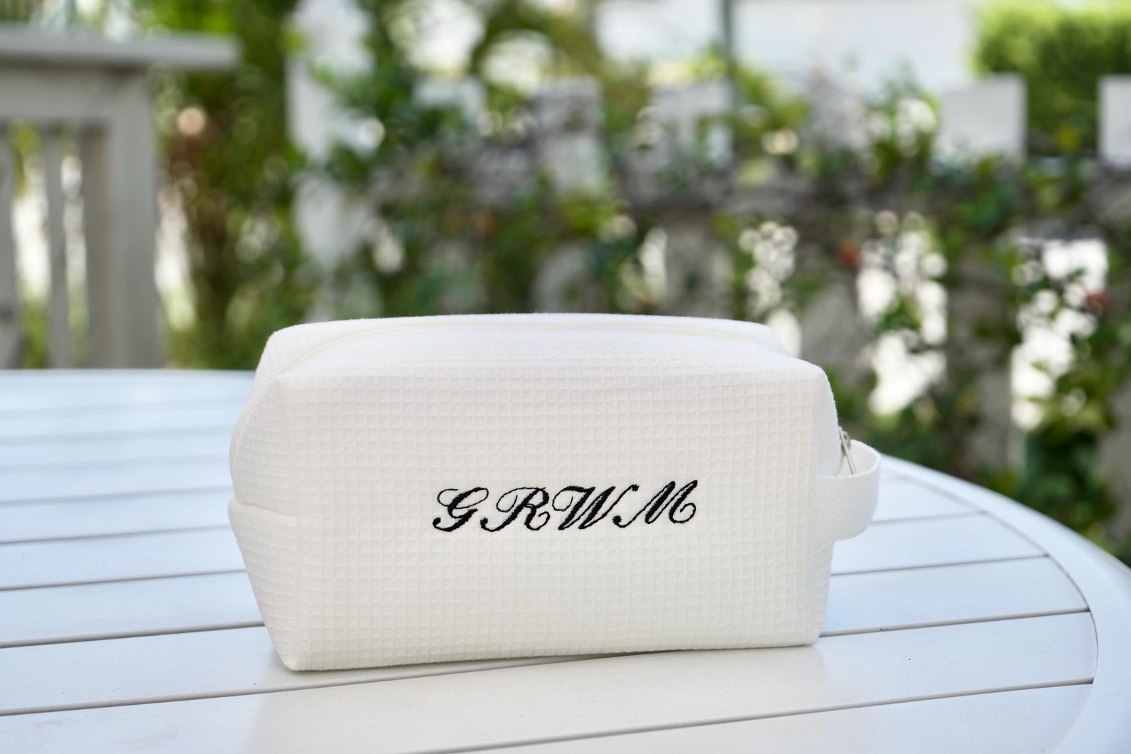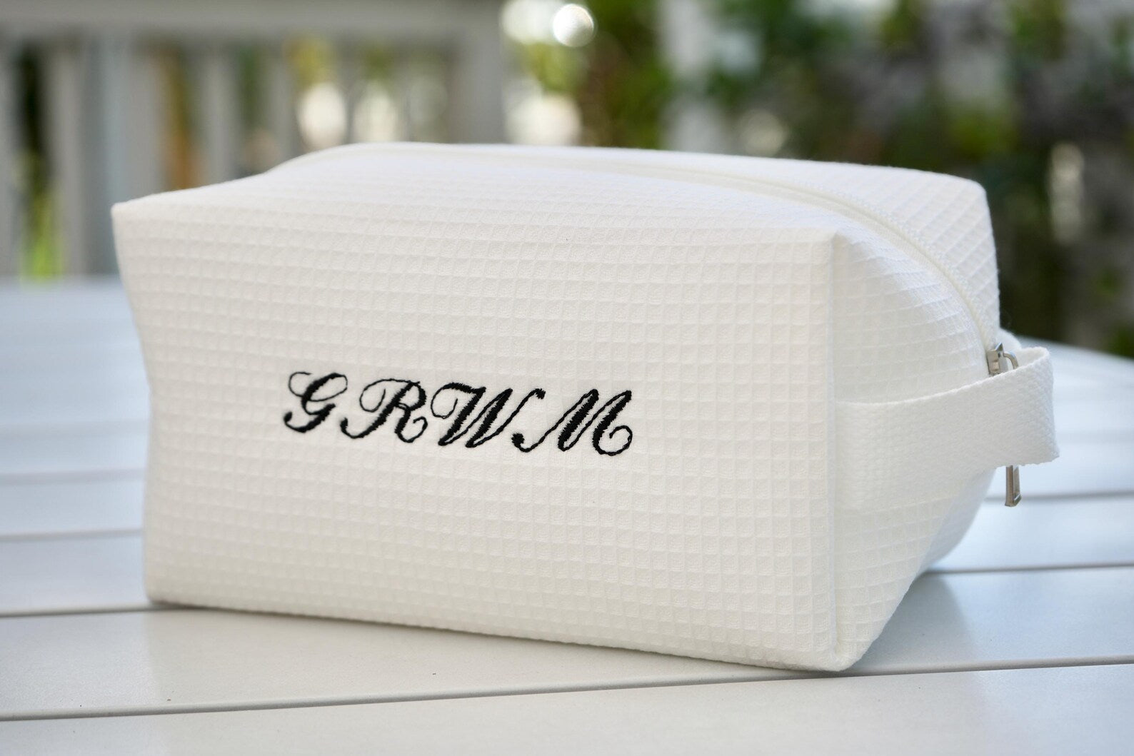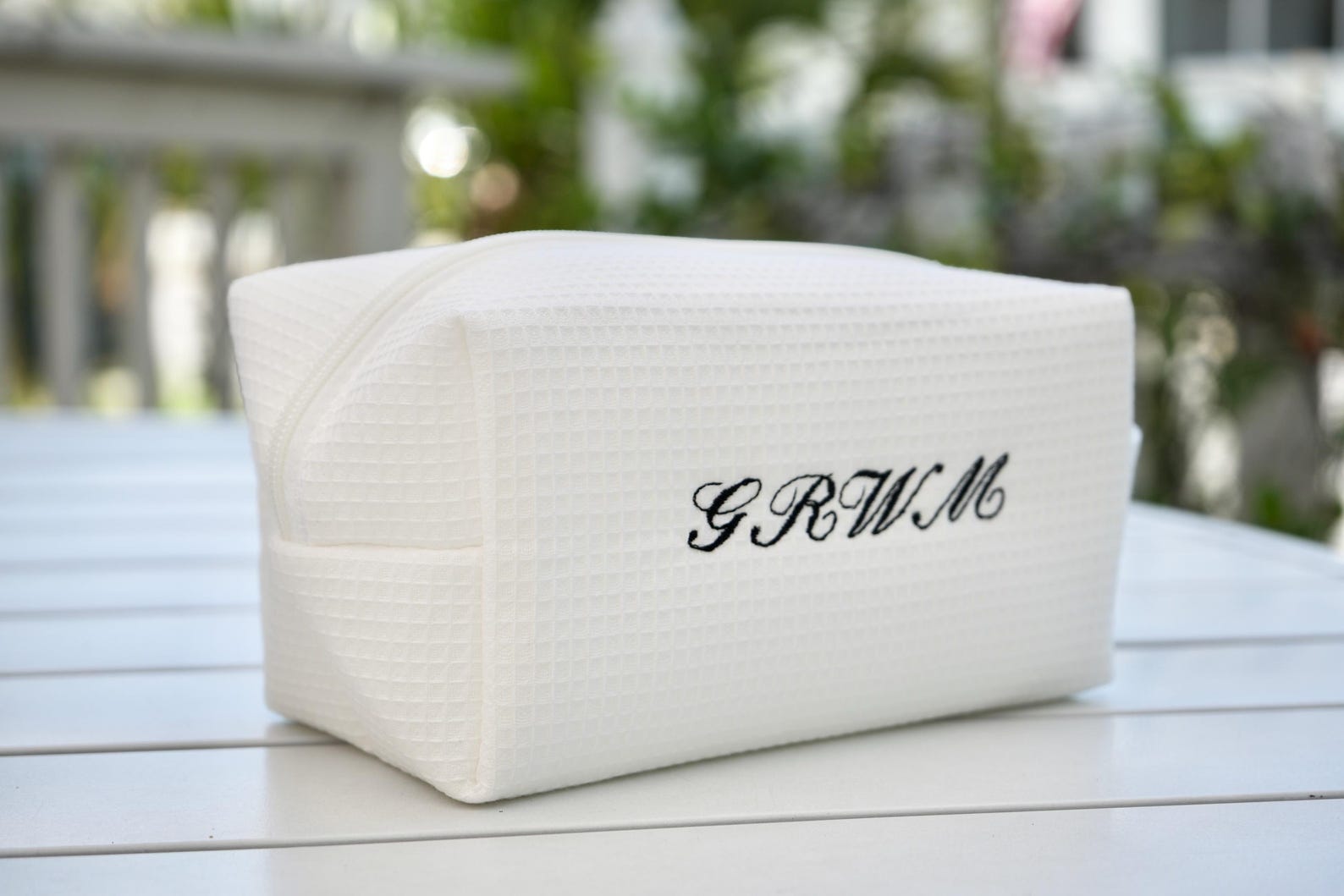 GRWM Embroidered Waffle Cosmetic Bag Monogram Travel Toiletry Pouch
