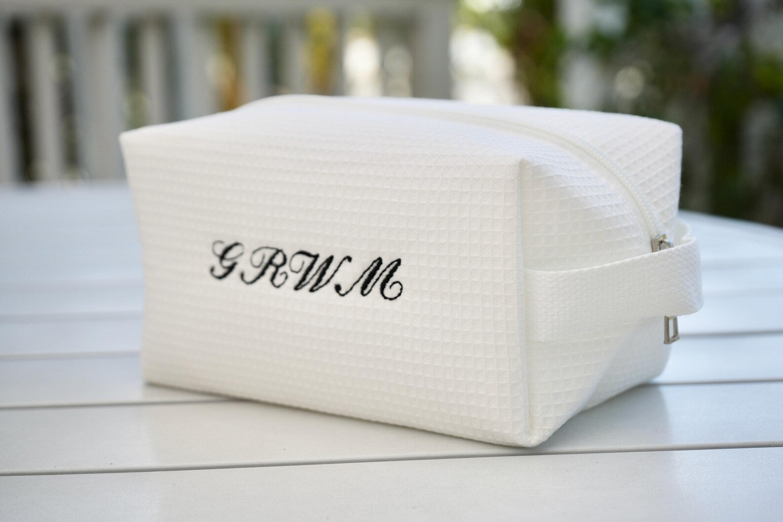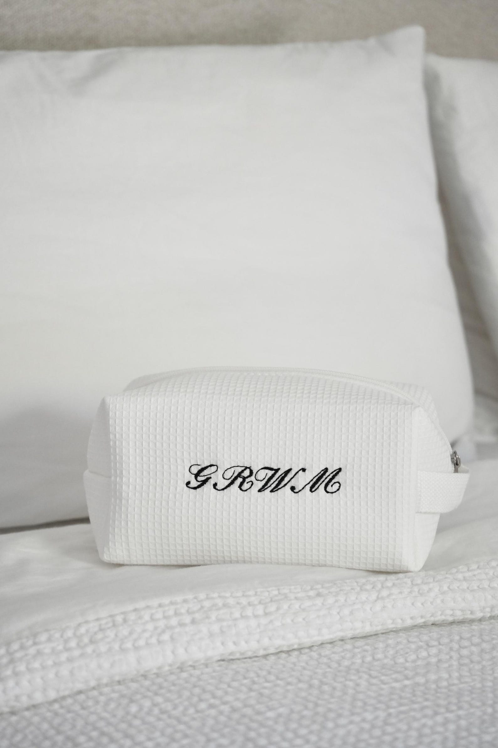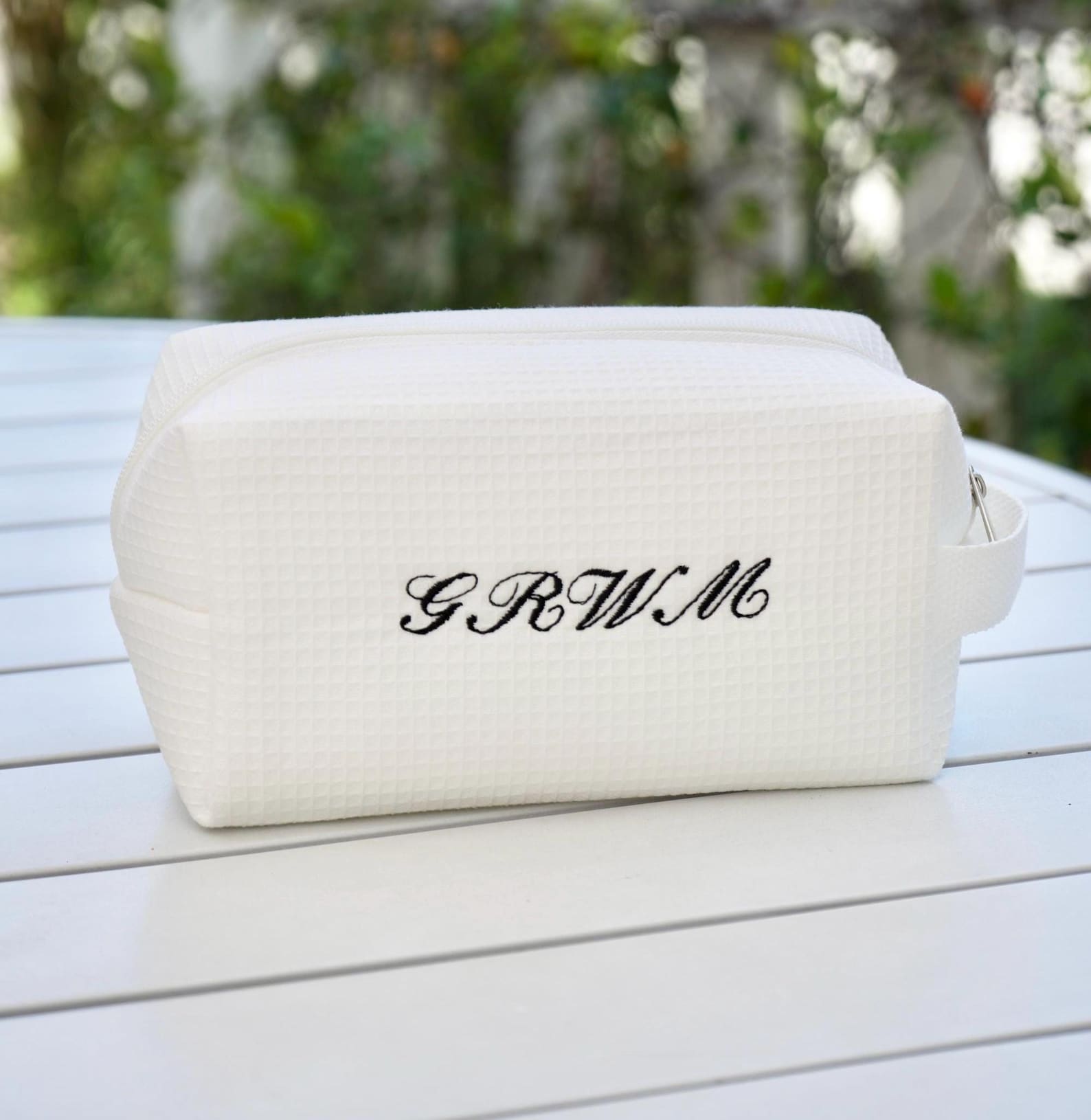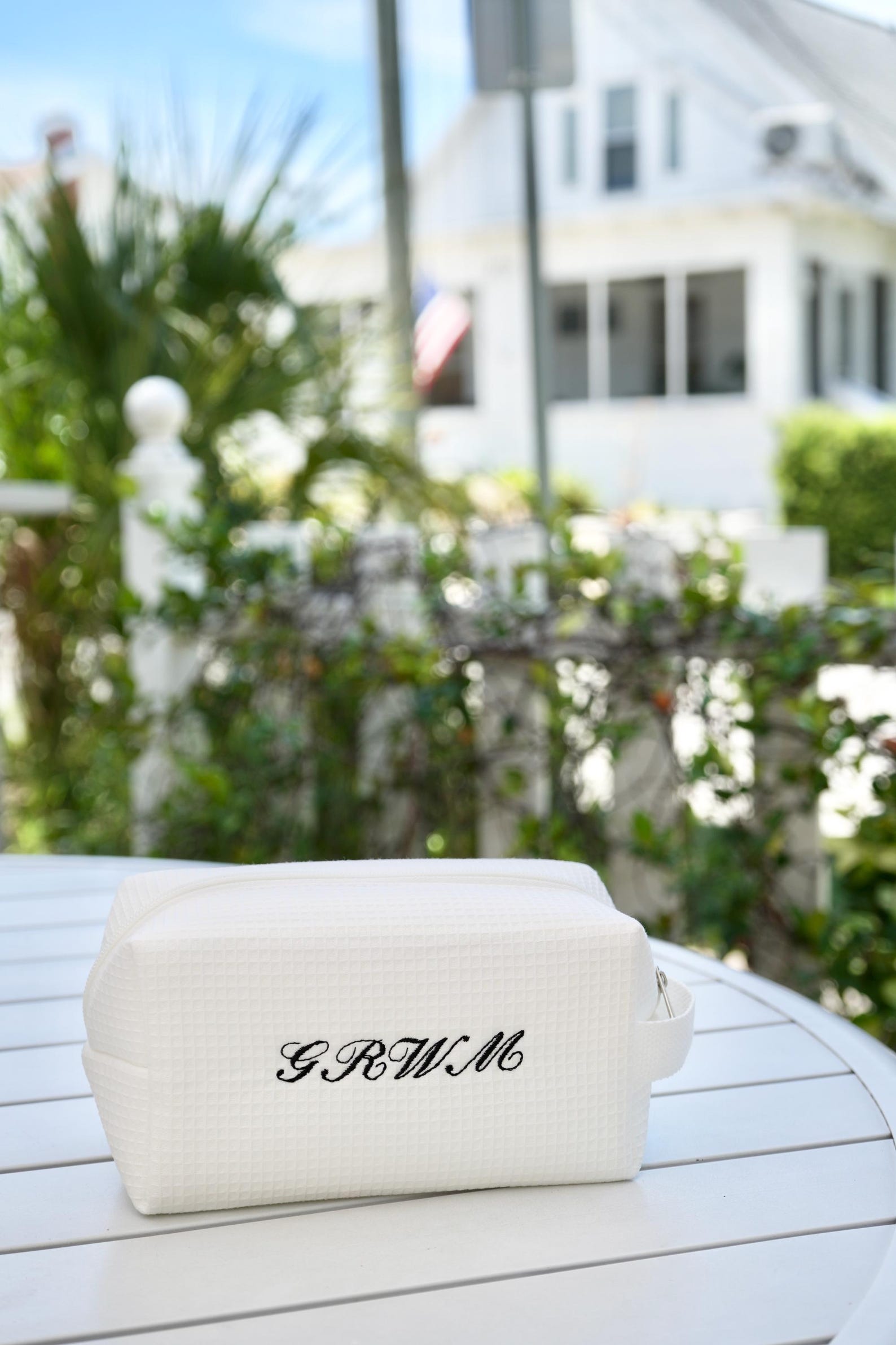 GRWM Embroidered Waffle Cosmetic Bag Monogram Travel Toiletry Pouch