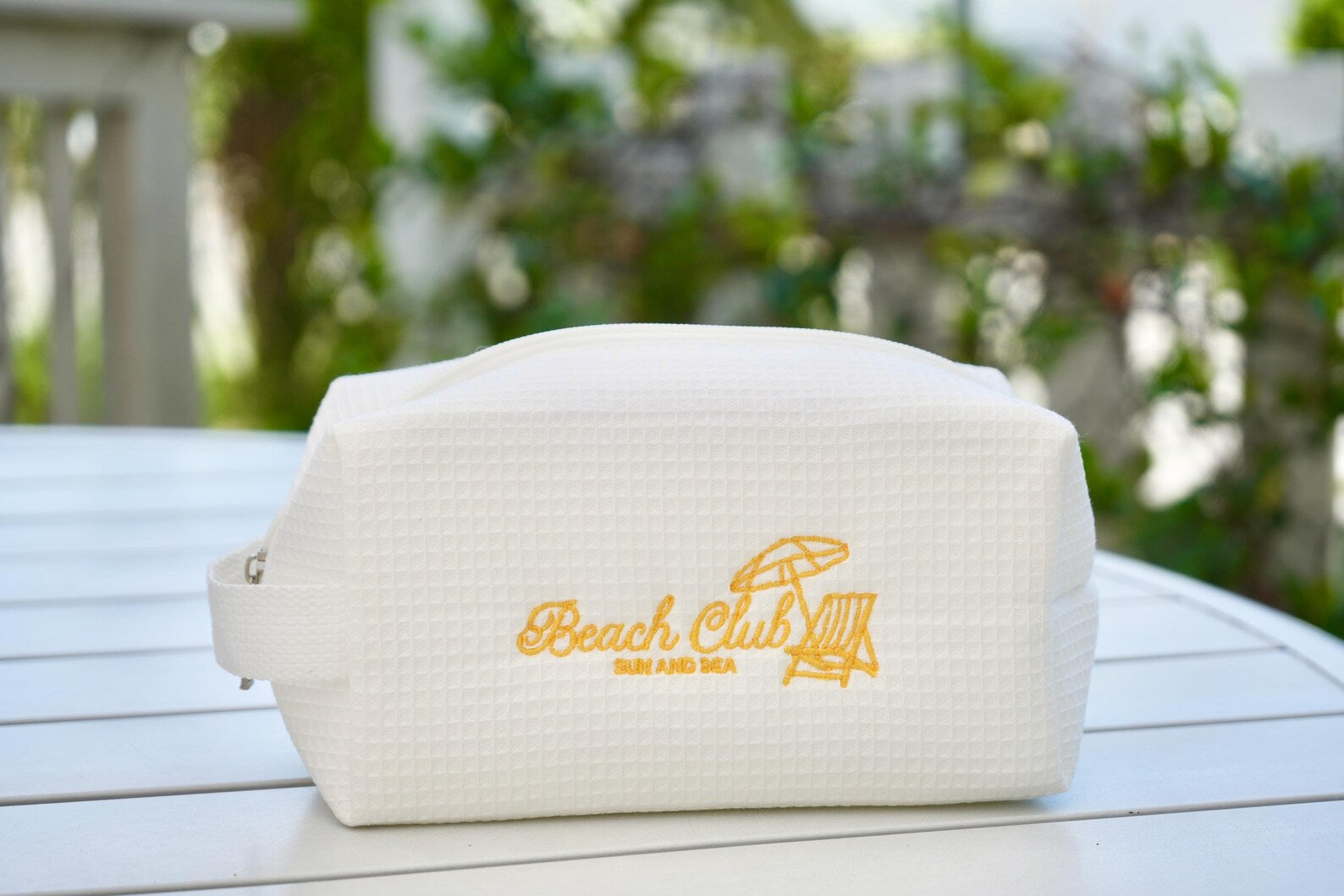 White Waffle Cosmetic Bag Beach Club Travel Toiletry Bag
